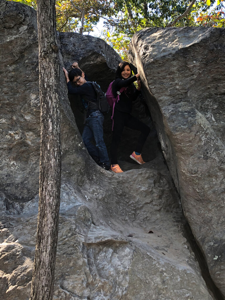 We learned how water can create big potholes in rocks over hundreds of years of water eddying around the rock and eroding it. Two of them could fit in one large pothole we discovered along the way.